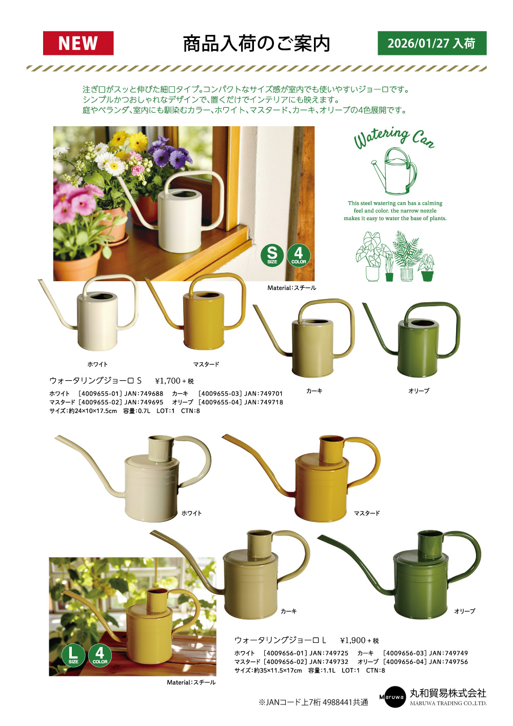 コンパクトなサイズ感で室内でも使いやすい!シンプルかつおしゃれなデザインでインテリアにも映える、「ウォータリングジョーロ」が新しく入荷しました。以下よりPDFをダウンロードいただけます。