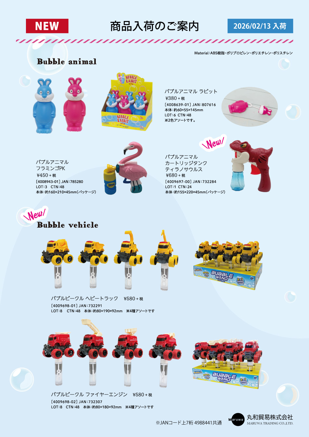 アニマルや働く車型の楽しい「バブルアニマル」「バブルビークル」が新しく入荷しました。