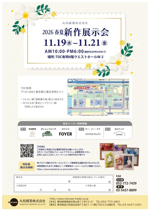 平素は格別のご高配を賜り、誠にありがとうございます。弊社は以下の通り、【東京 2026春夏 合同展示会】を開催いたします。ご多忙かとは存じますが、何卒ご来場賜りますようご案内申し上げます。