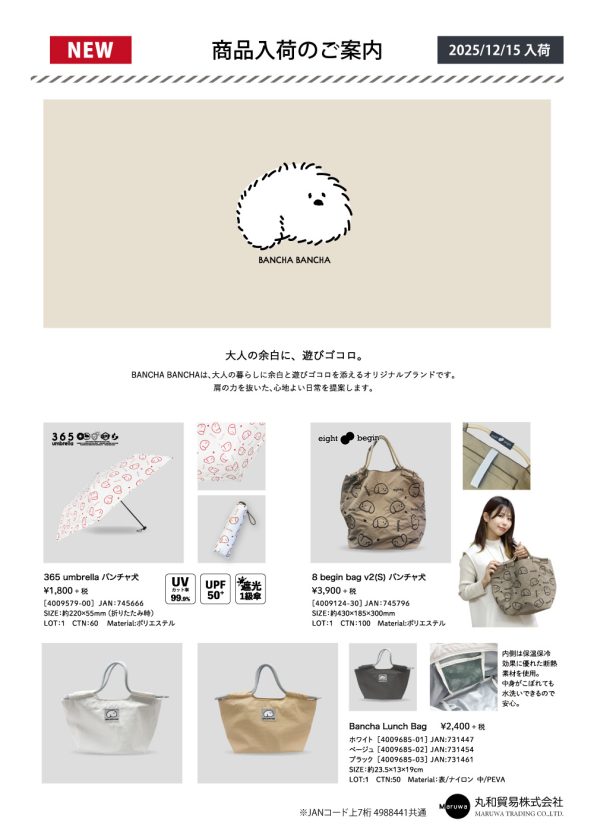 オリジナルブランド「BANCHA BANCHA」から、おしゃれなくすみカラーの「Bancha Lunch Bag」が新しく入荷しました。