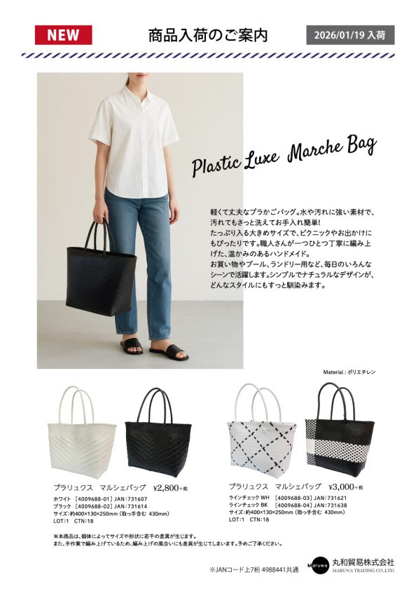 軽くて丈夫なプラかごバッグ!大きめサイズでお出かけにもぴったり。職人さんが一つ一つ丁寧に編み上げたハンドメイドの「プラリュクス マルシェバッグ」が新しく入荷しました。以下よりPDFをダウンロードいただけます。